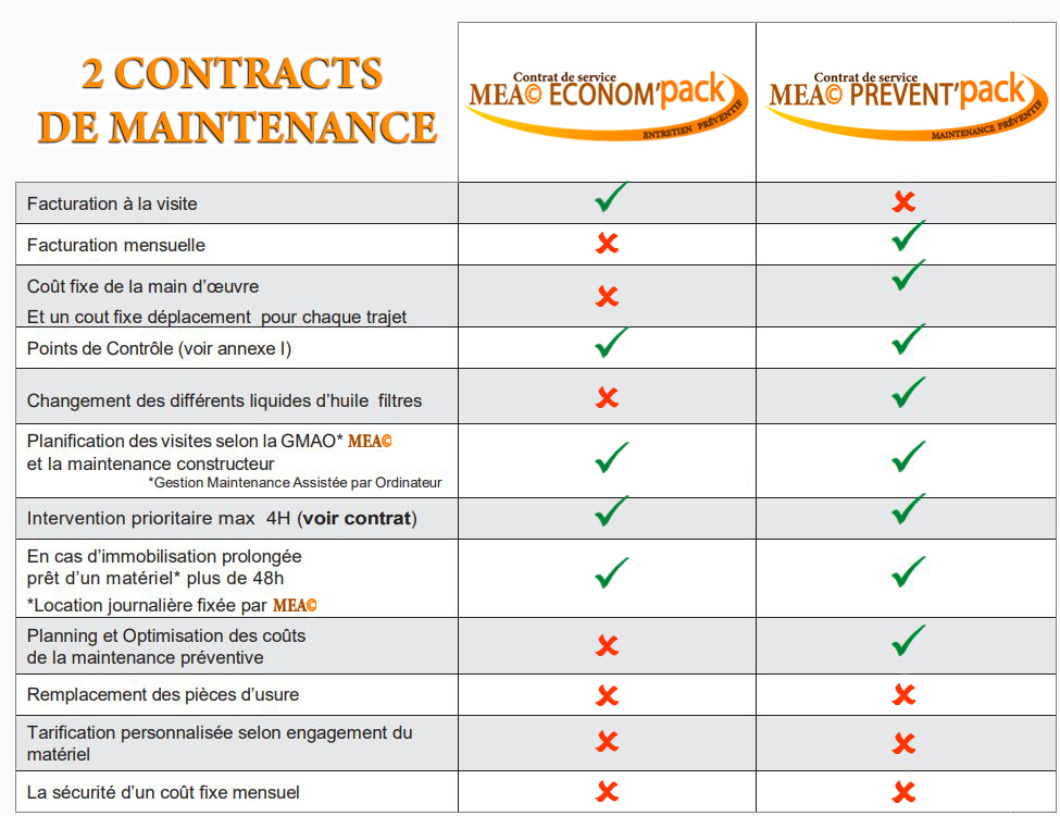 Les spécificités des 2 contrats de maintenance MEAINDUST