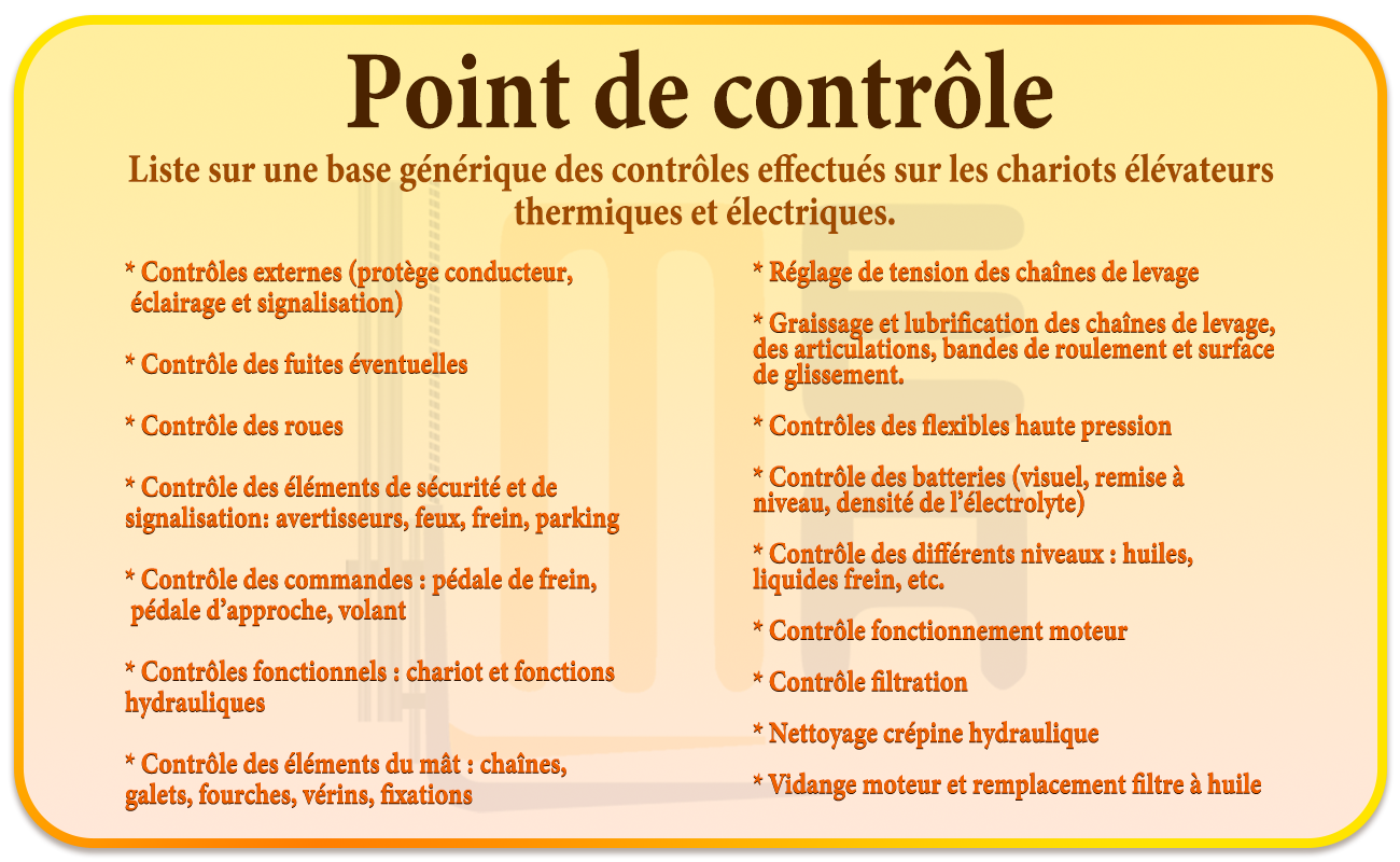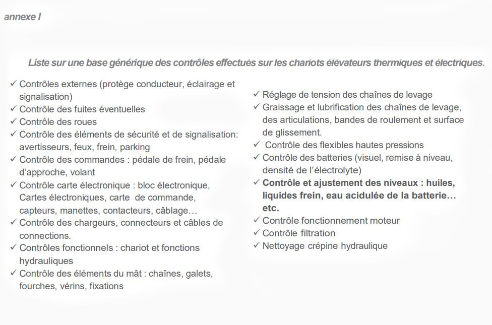 • Intégration des préconisations et des conditions de garantie du constructeur chariots élévateurs